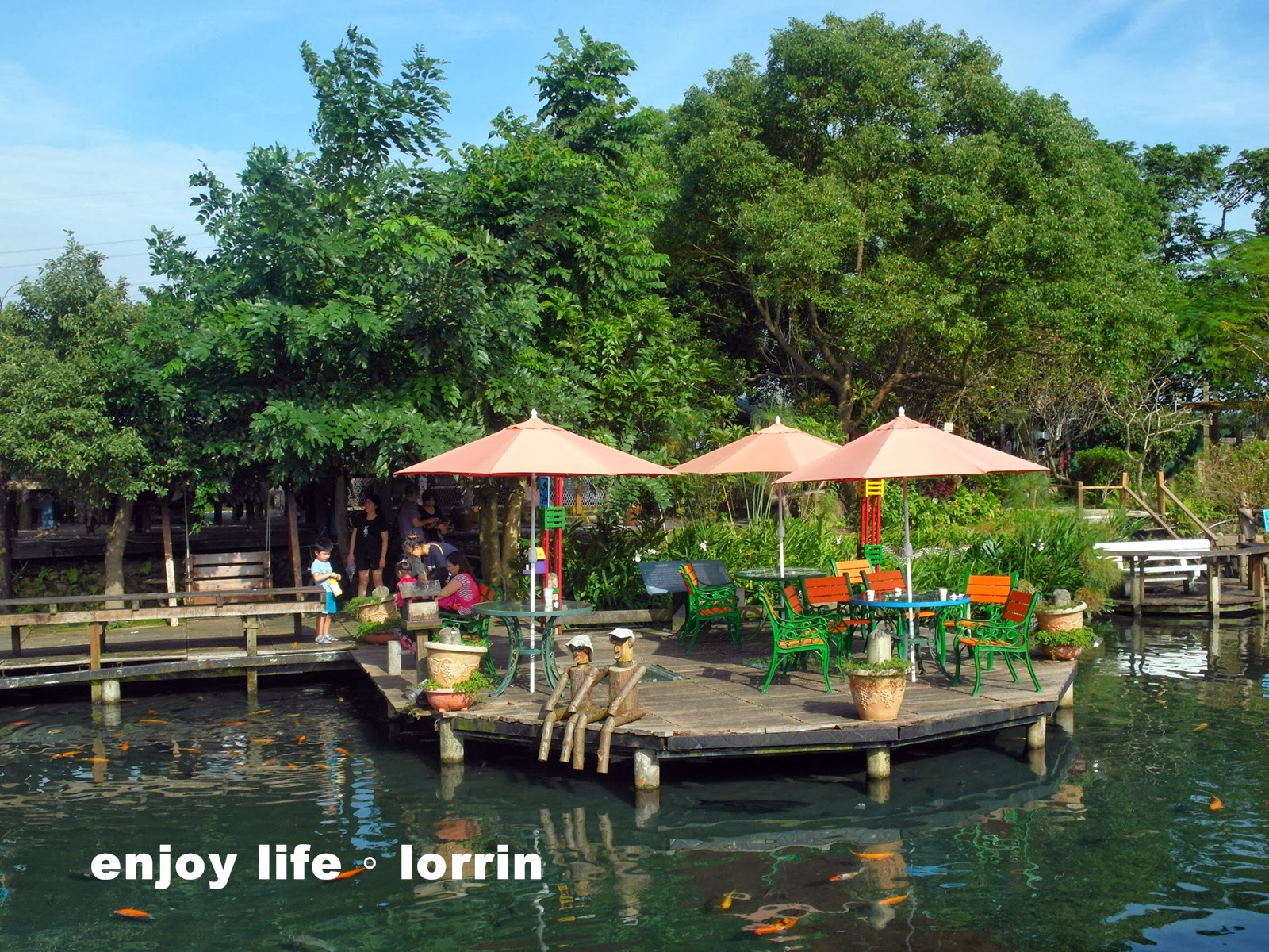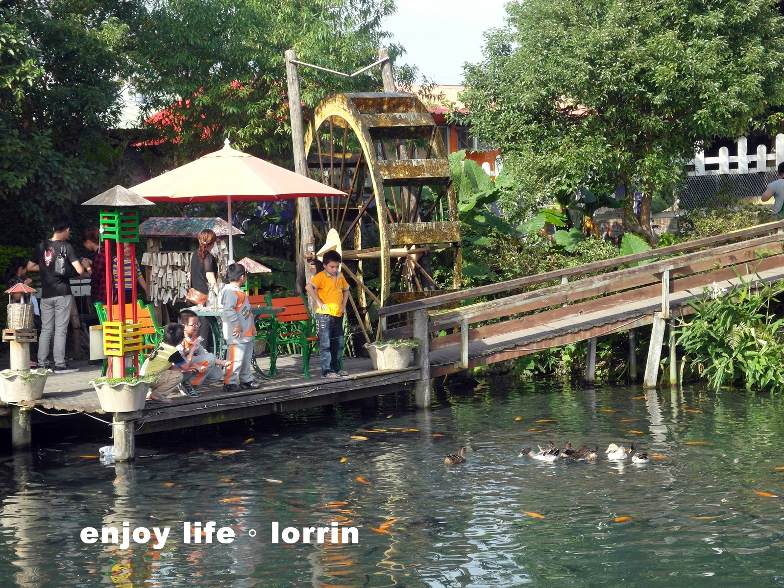 池裡的鴨子跟魚都不怕生