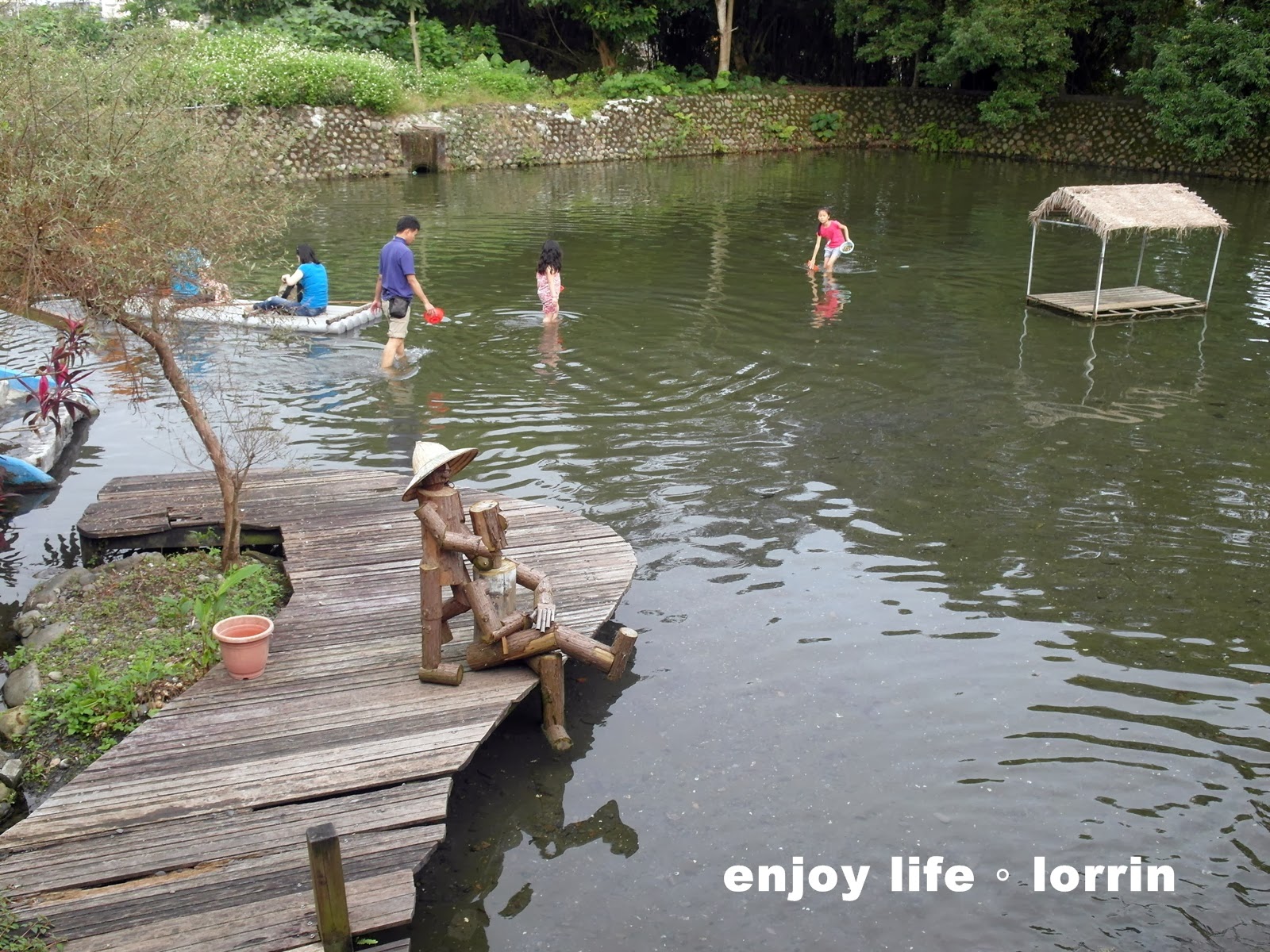 這天陽光微微露臉,擁有天然湧泉的魚池很清澈