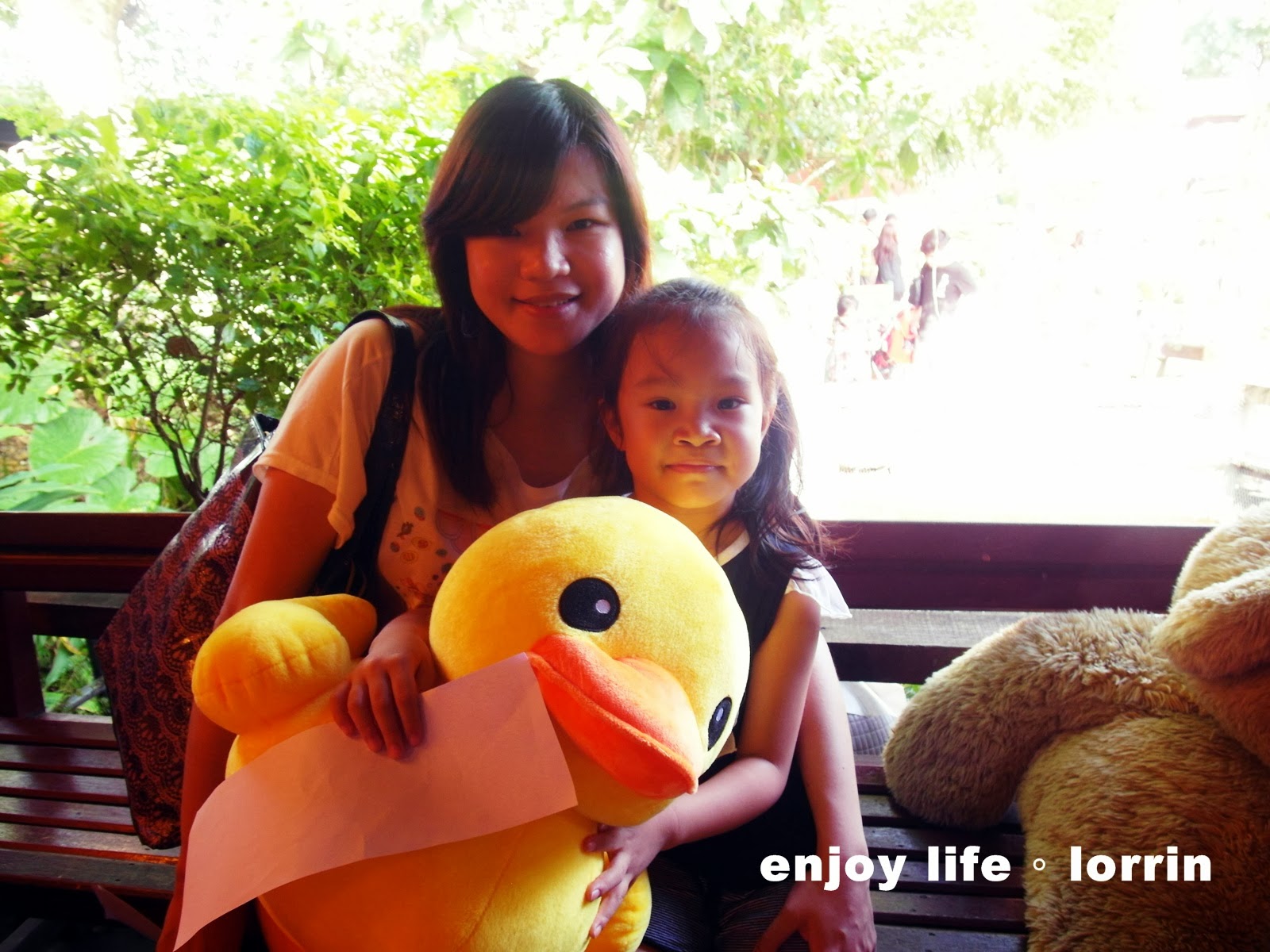 女兒看到可愛的黃色小鴨玩偶愛不釋手