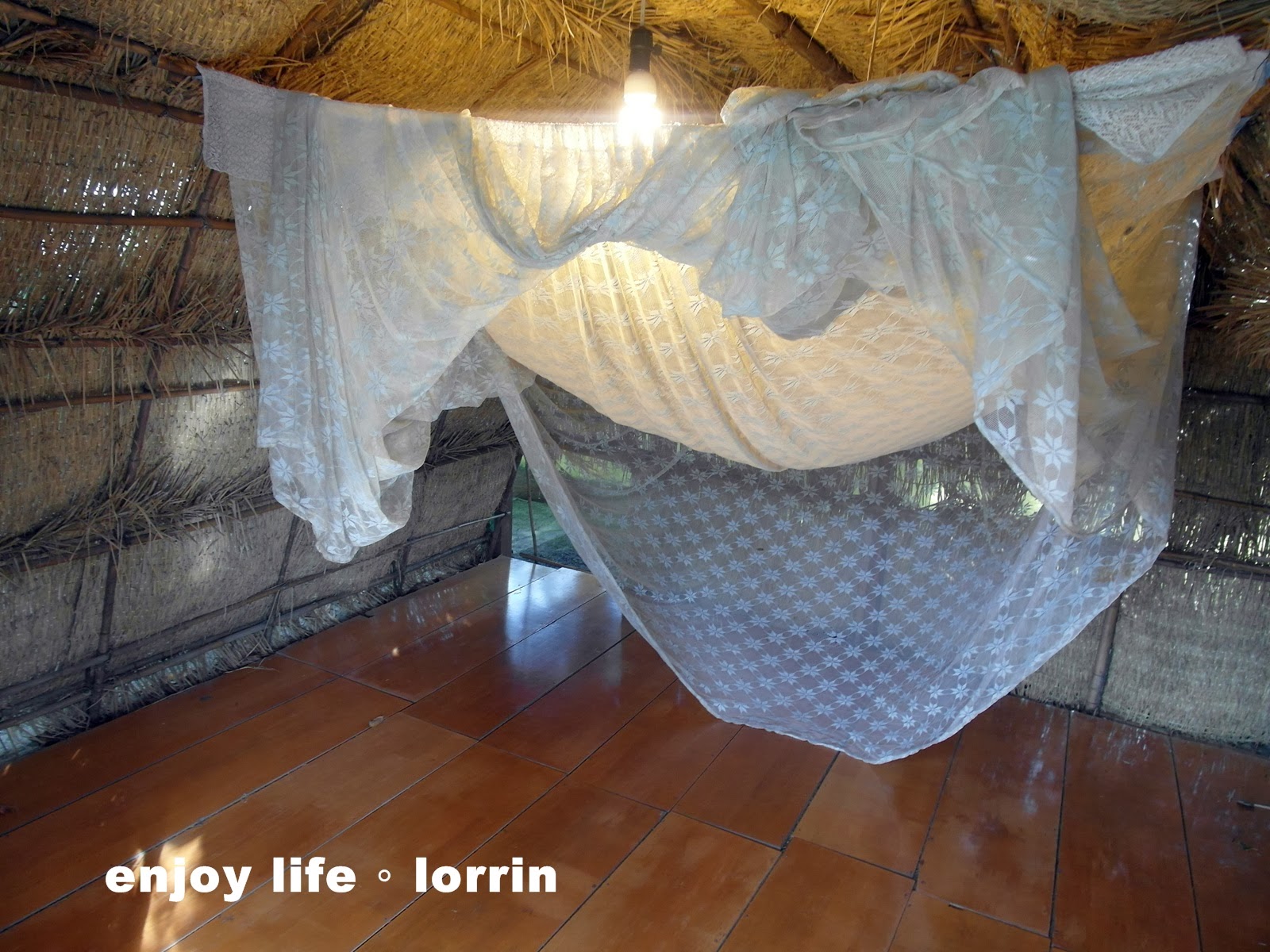 昏暗的燈光下、老式的舊蚊帳,很懷舊的味道