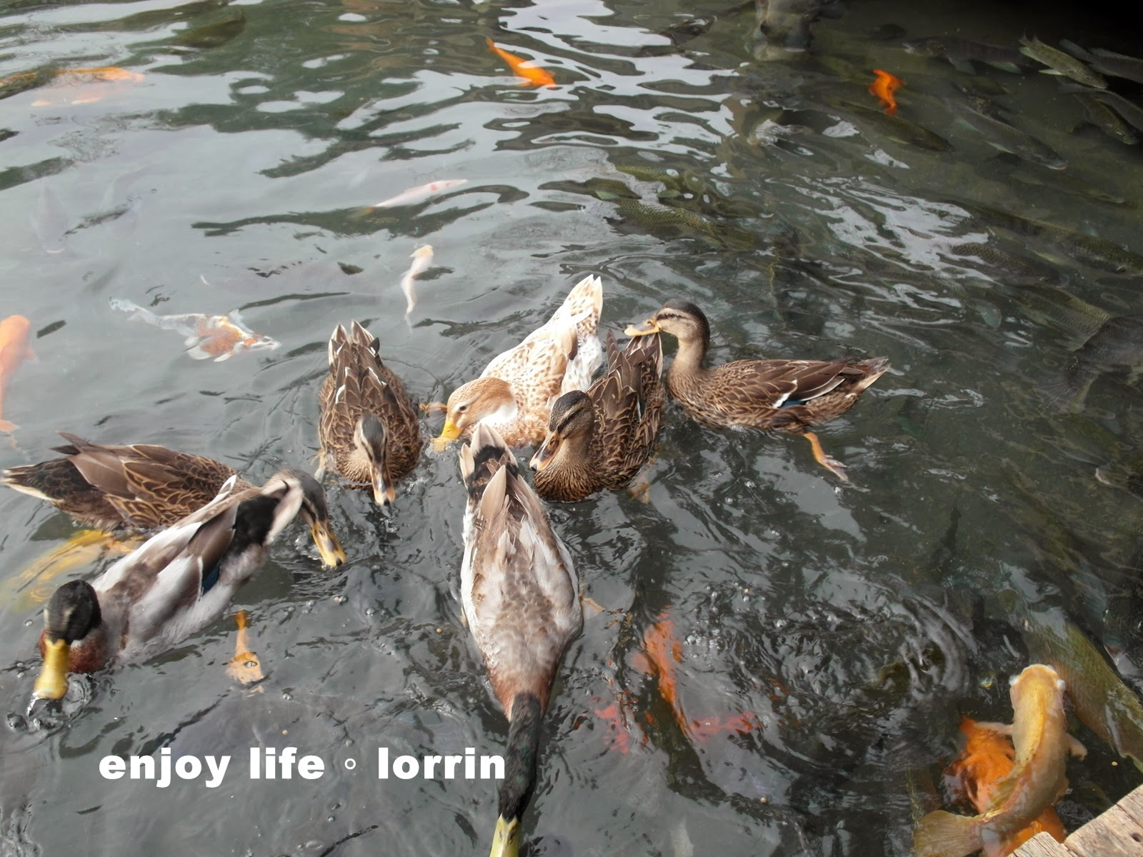 鴨子都很不客氣的跟魚搶飼料吃~