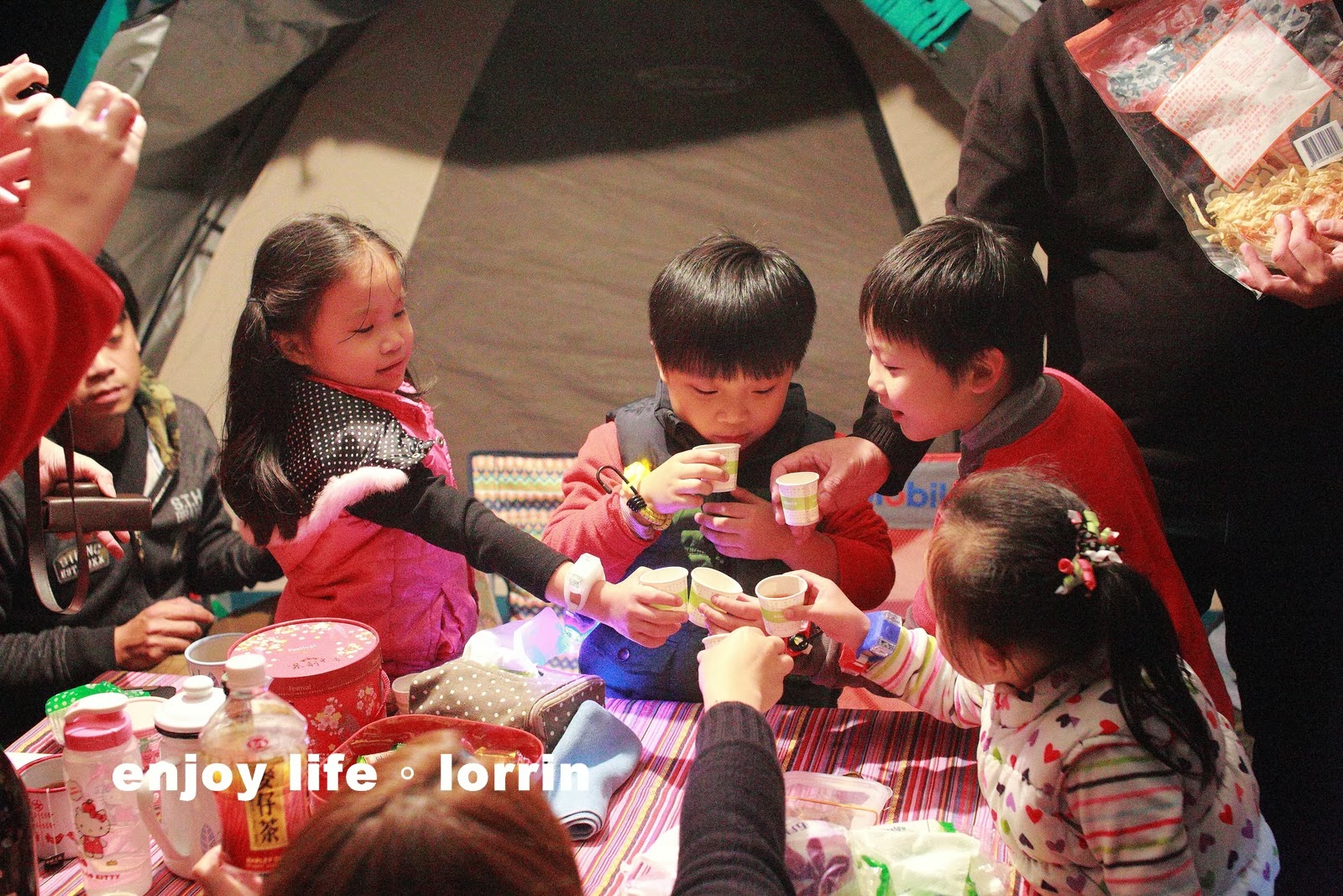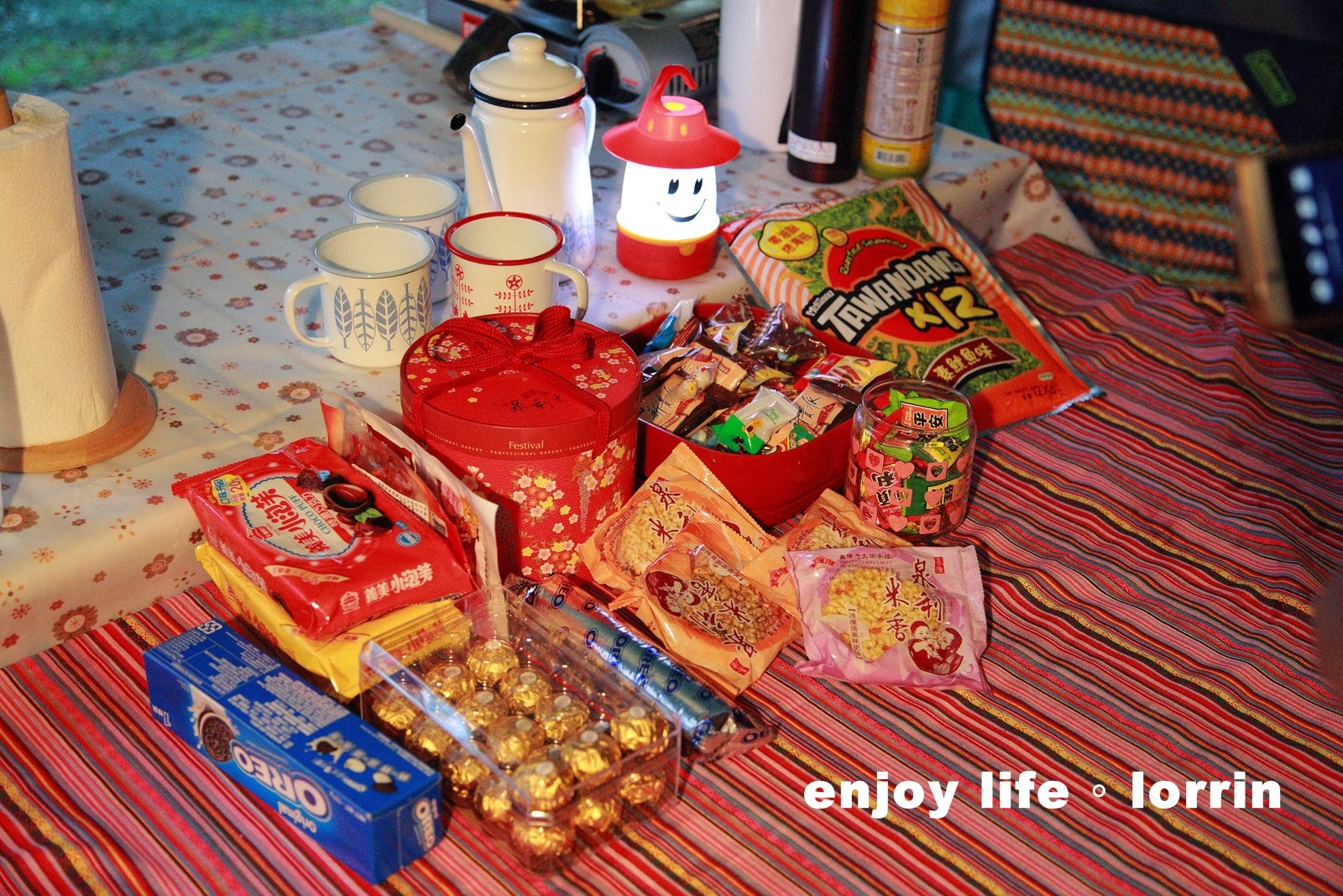 帳篷搭好以後開始來零食趴,每家人都把零食拿出來
