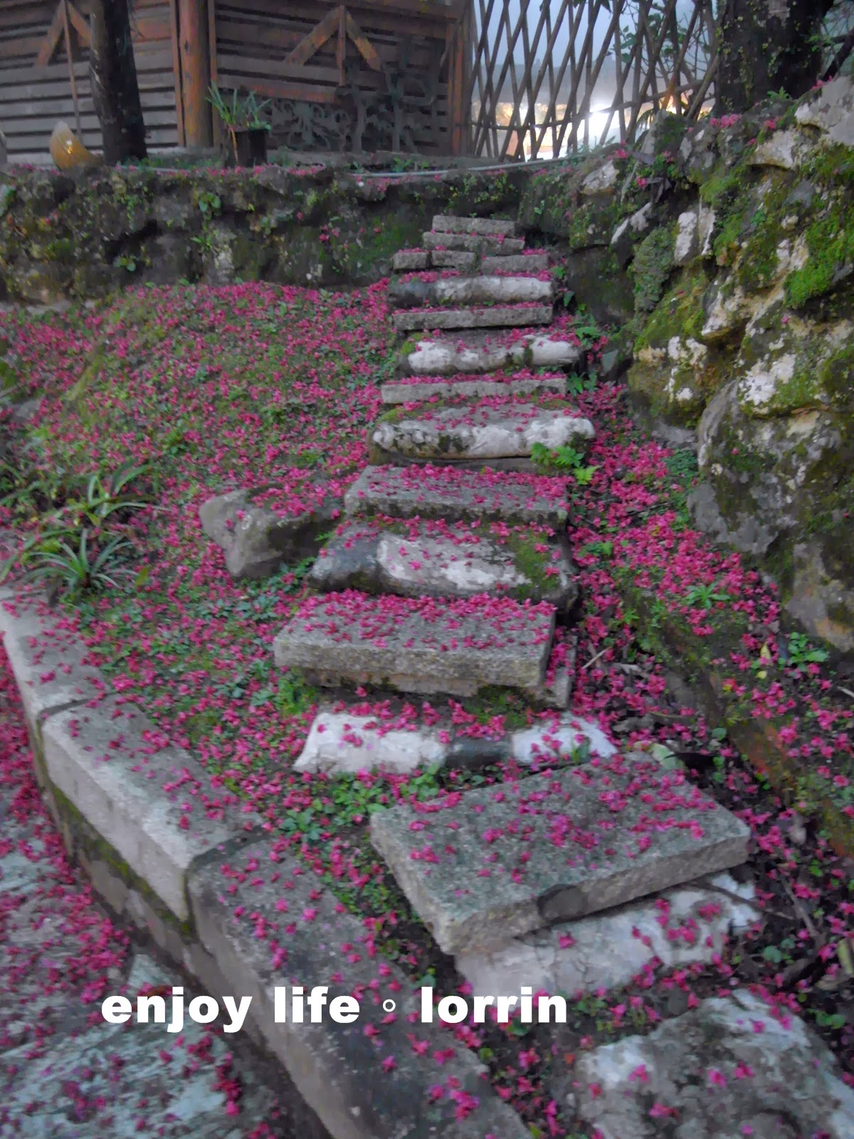打了一地的櫻花,不過鋪滿整個階梯也是蠻美的啦
