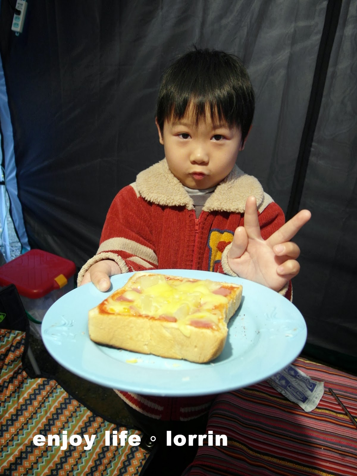 熊媽來個披薩厚片,諺家這次則吃蛋餅