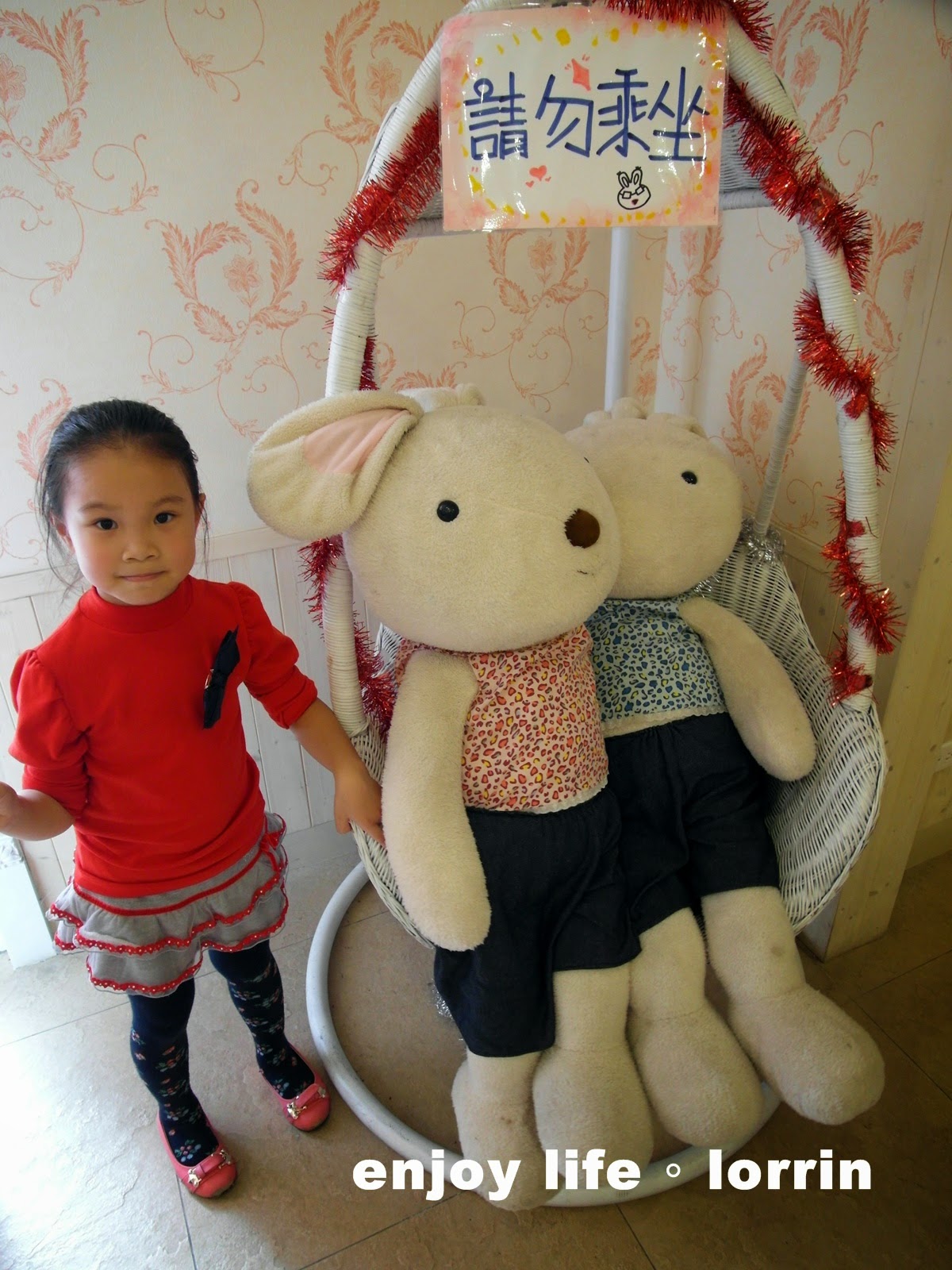 真愛館的門口有一片照片牆,好不容易等別人拍完才輪到我們母女倆