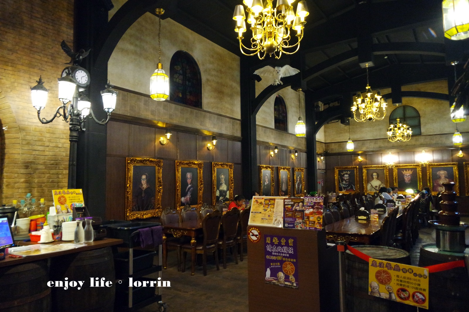 後半段以哈利波特中的霍格華茲食堂為場景的餐廳