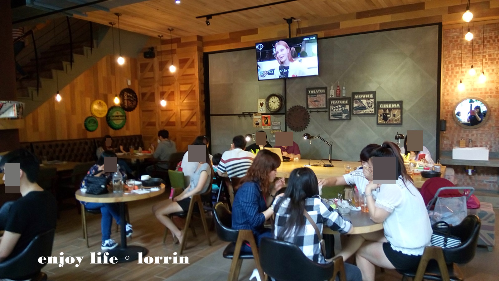 一樓座位滿滿的客人,我很喜歡靠牆的那一塊大木桌