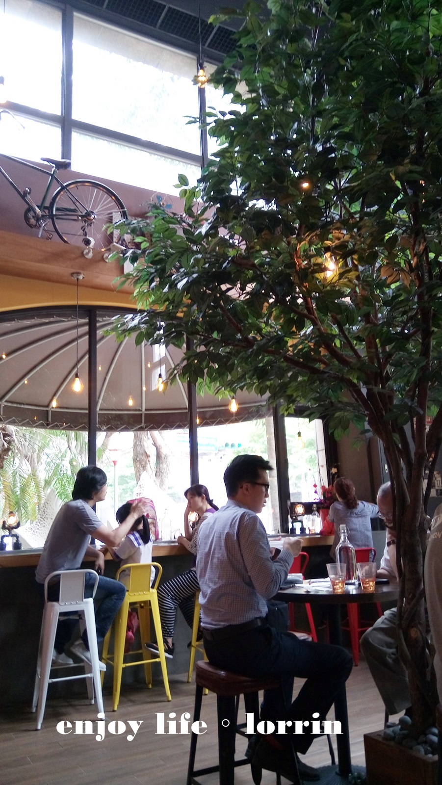 很妙呢!店裡有一顆大樹,旁邊設置高腳桌